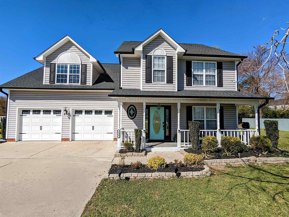 Come see this is a move-in ready, desirable home, 3 Bedroom 2 1/2 Bath. Walk into a Living room and relax in fount of a warm, inviting gas log fire place. Adjoining the dinning room is 2 stunning formal columns accents and a Tray ceiling! Then there is your spacious eat-in Kitchen and pantry. Next step though your French doors and into your sunroom you can enjoy year round and patio w/privacy fenced nicely landscaped backyard with solar lighting, great for kids and pets! Upstairs features 3 Bedrooms, The main bedroom has tray ceiling, large walk-in closet also has a en-suite with jetted soaker tub and separate step in shower. Enjoy the Large Bonus room plus a large walk-in Dormer space that makes a great office /study area, also 2 more Bedrooms and a full bath. Downstairs a Oversize drive way and 2 car Garage with secondary entry access to pantry/kitchen for groceries. This home also has a Cool HOA Pool and Playground for the kiddoes! This home comes with a one year home warranty and a security system that the new home owner can have activated! Must see!!