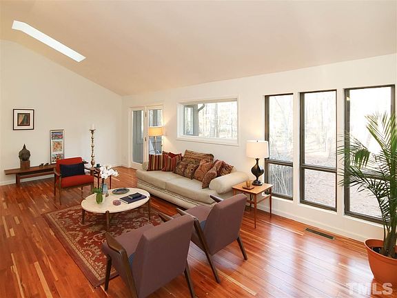 Enjoy this stunning updated Fearrington home featuring an abundance of windows nestled in the woods on a large lot. Nice open feel in the living areas with hardwood floors. Energy efficient state of the art geothermal hvac system and a fully renovated Kitchen & Baths. 3 bedrooms & 3 full baths! Lots of extra spaces for relaxing, reading, exercise or yoga in the sunroom and enclosed heated porch off the large master bedroom. 2 outside storage units. A short walk or bike ride to town center.