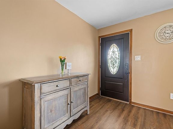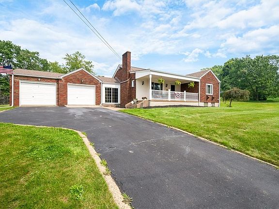 Welcome to this delightful ranch home on a generous half-acre lot. Covered front porch invites relaxation, well-manicured lawn adds to the property's charm. LV welcomes you w/ample natural light from large windows & cozy gas fireplace, creating a warm & inviting ambiance. HW floors & neutral color palette flow seamlessly into DR, ensuring a cohesive & timeless design. Updated KT features white cabinetry, granite countertops & SS appliances, offering both style & functionality. Adjacent breakfast nook, complete w/coffee bar, provides a delightful space to start your day. This home offers 2 spacious BDs w/ample closets to meet your storage needs. Beautifully updated bath features a tub-shower combo. Expansive LL holds great potential, providing opportunities for a game room, laundry area & additional storage. Enclosed breezeway offers versatile space. A notable feature of this property is the brick shed, ideal for a “man cave” or “she shed.” Completing the home is 2-car attached garage.
