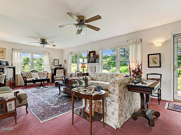 Welcome to this beautiful home built in 2001, situated on a serene 2.2-acre lot. This ranch offers a perfect blend of comfort, accessibility, and versatility. The main floor that is handicapped accessible features 2 spacious bedrooms and 2 full bathrooms. The living area is open and filled with natural light from large windows. Custom features include beautiful honeycomb shades, custom-made bookcases, a computer desk, filing and storage drawers, and bookshelves in the kitchen. There are generous closets and storage space throughout the home. Enjoy the scenic views from the two screened porches located upstairs and downstairs. The house also includes a 2 car garage, an asphalt driveway and an all-house generator for peace of mind. The lower level has a cozy apartment featuring 1 comfortable bedroom, 1 full bathroom, and a charming L-shaped living area and kitchen. The apartment is conveniently accessible from the garage and the downstairs porch. If you are looking to make even more living space the basement unfinished area has a dropped ceiling and is easily ready to finish! Outside, the property boasts a stunning garden filled with a variety of plants and flowers, a picturesque stone wall, and a blue stone path and a French drain. The front of the garden is lined with giant trees, providing excellent privacy. Adding to privacy on the property are 8 giant arborvitae trees, 2 apple and 2 pear trees. This property offers the perfect combination of modern amenities and tranquil living. Don't miss out on making this your dream home!