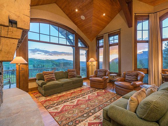 Residing on a ridge adorned with stately Spruce and Fir, this wonderfully executed home affords stunning views in multiple directions. You have the choice to wake up every morning to either, iconic Wilson Peak as your first image of the day or the impressive Sneffels range as two elegant master bedrooms on the north and south side of the home provide this option. The open floor plan on the upper level provides you, your family and guests the ability to revel in awe through perfectly positioned, massive windows that capture magnificent 270 degree views. Plaster finish throughout, warm, thoughtful furnishings, an office, bunk room, workshop, 2 car garage and media room complete this idyllic 5 bedroom, 5.5 bath Mountain Village retreat.