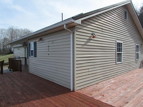 Located just outside of the City, and perfectly situated back off the main road to assure privacy, ranch style home in good condition. Built in 1994, home has a brand new metal roof and also features large wrap around decking with total privacy from any surrounding neighbor. The roof is designed to accommodate solar panels if desired to be added by the new owner. Property is bordered by dense woods, heightening privacy for outdoor enjoyment. Large living room with corner fireplace featuring gas logs. Eat in kitchen with all appliances conveying. Large sunken family room with updated laminate wood flooring which could also easily convert to a third bedroom if needed. Oversize laundry room providing ample storage. Huge master suite with private en suite bath and a walk-in closet. Secondary bedroom offering a wall of closet storage and close access to the main bath. Central heating and air conditioning. Security system. This home is aggressively priced to beat all the competition. An ideal choice for those seeking a nice home with privacy. 100% USDA or VA, and 97% FHA financing available to qualified buyers. All info. taken from Tax Records. Buyer/Buyer's Agent to verify all.