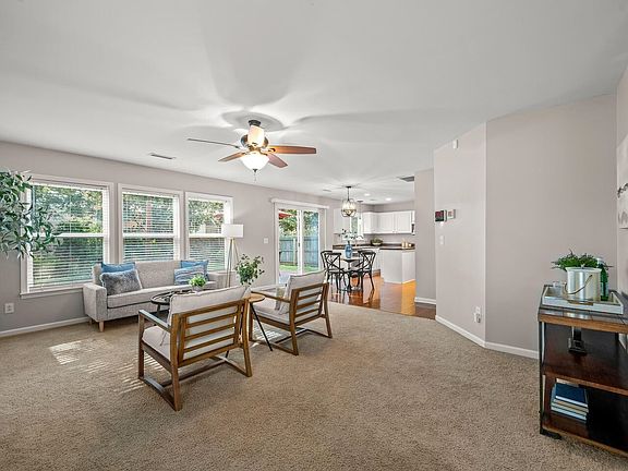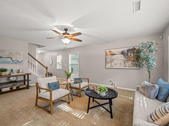 Must-see fantastic home in wonderful Eagle Ridge golf community. Stone accents, mature trees and a fenced-in backyard enclave make this a home that you want to come home to. Fresh paint. Open design on first level w/ family room, dining area and kitchen w/ access to the deck, garage and front door. White kitchen cabinets with a center island flow nicely for cooking and when guests arrive. Private downstairs half bath. Spacious owner's suite on second floor w/ walk-in closet, tray ceiling, walk-in shower. Two bedrooms or a bedroom and study share a bath. Washer and dryer in upstairs laundry. Pull down attic provide access to HVAC. Four ceiling fans. Vivent security system: doors, glass break, motion and garage opening. Large 2-car garage w/ ample storage space. Gas water heater in garage. Community pool, tennis courts and neighborhood playground.