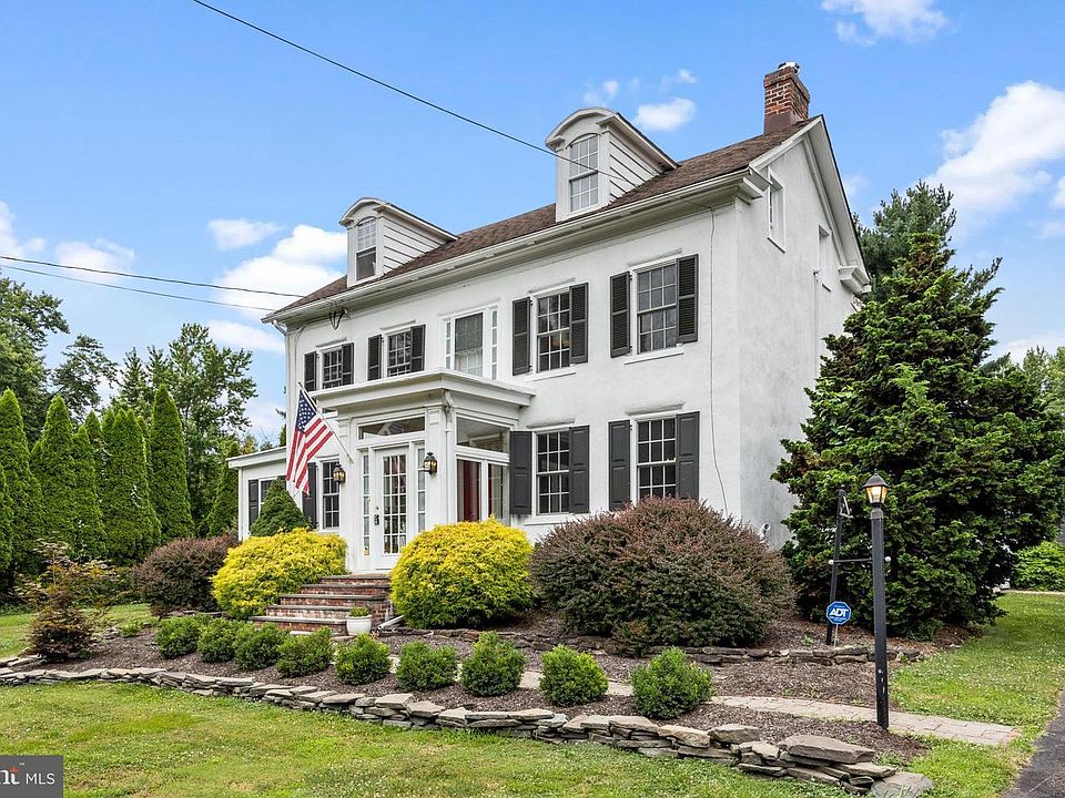 The Thomas Buckman home, circa 1800, is a quintessential Bucks County stucco over stone Federal style home offering the perfect balance of old-world charm and modern amenities. The original home blends seamlessly with the newer additions, and has been lovingly maintained by the current owners. A bright foyer invites you to enter through the original double front entry doors as you take notice of the classic pumpkin pine floors and architectural millwork. Relax with guests in the original living space featuring traditional built-ins and stone fireplace with gas line, before enjoying a meal in the dining room. A private home office, accessed from the living room, includes a separate entrance. The spacious rear addition offers a kitchen with solid wood cabinets, stainless appliances, center island and beverage bar, as well as an adjoining great room with expansive picture window that showcases the amazing one-acre property bursting with vivid perennials, extensive vegetable and fruit gardens, and a number of specimen trees. A convenient mud/laundry room, with laundry chute from upper level, provides access to the side entry and oversized two car detached garage with new Hardie Plank siding. Below this lovely addition is a finished lower level with yet another office space and/or home gym. Ascend the center staircase to the second level boasting a generous sized main bedroom with en-suite, spacious walk-in closet, plus built-in cupboards and shelving. A second bedroom offers an additional walk-in closet. Completing this second level is a guest bedroom with a private balcony overlooking the rear grounds, and a convenient hall bath. On the spacious, yet cozy, third level is a charming fourth bedroom with dormers and window seat, plus an additional room that provides a closet and abundant storage space. There are endless opportunities for your outdoor enjoyment and entertaining with a screen porch, stone patio and a built-in fire pit. The fully fenced rear yard is ideal for pets and for gardening and hobbies. A tremendous amount of storage space is offered in the two basements, attic, garage, as well as the numerous closets and built-ins available in many rooms. This amazing property provides an easy country lifestyle within minutes of Historic Newtown Borough, several parks, plus major commuting routes and train stations to Philadelphia, Princeton and New York. The current owners converted the home to natural gas, installed a high-efficiency gas boiler and Kohler generator for added convenience, and replaced the windows for additional efficiency. A traditional stucco craftsman repointed the stone and replaced the stucco on the historic home, which is warrantied, and resurfaced the original basement walls. This lovely historic home has been meticulously maintained and is ready for you to move in and enjoy the natural beauty in all four seasons! Worth Noting: The septic system is a modern sand mound system. There are 2 tanks that pump out to the sand mound that is far back on the property. The historic barn on the adjacent property is being restored and the owners are building a small home further back on their property later this year.