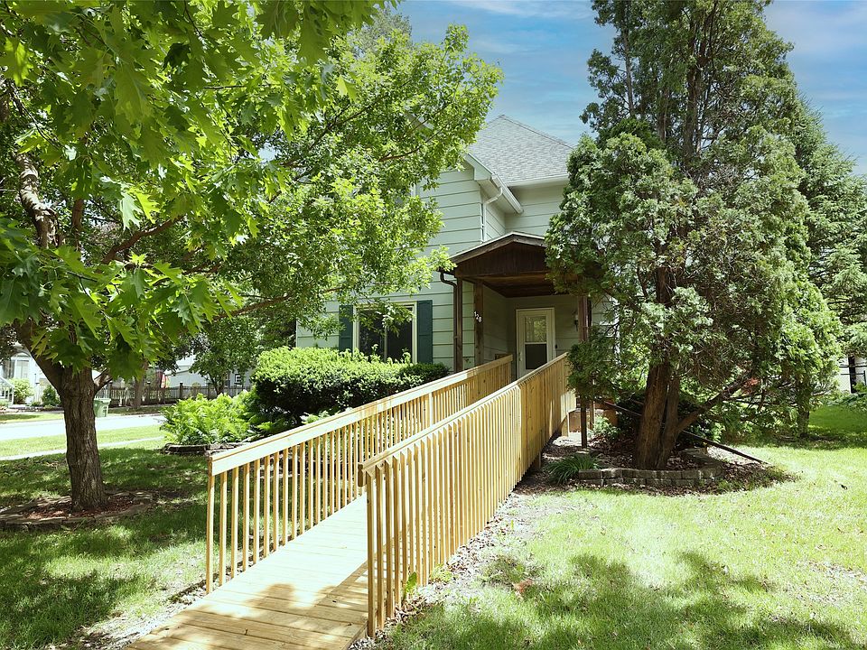 Convenient location, family home with so much room. This 4+ bedroom home gives most families room to spread out. Main floor hosts an eat-in kitchen with washer/dryer, large dining area w/fireplace, living room, tv room (or bedroom), full bath, and a primary bedroom with 3/4 bath....everything one needs on the main floor. Upper floor hosts 2 nice size bedrooms, a full bath, and a "kitchenette" that certainly could be another bedroom. All appliances stay. Furnace and Central Air replaced in 2024. Outside you will have a private fenced patio. Conveniently located to downtown and Boone Co. Hospital. Nice handicap ramp stays. Seller is offering a $6,000.00 updating allowance.