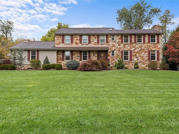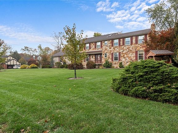 Welcome to this large colonial home in the desirable Stratford Manor community of Peters Twp. This stone-front residence is the perfect blend of comfort and convenience. Relax in the cozy living room by its charming stone hearth fireplace and wood floors, or enjoy the serene covered 3-season room ideal for unwinding or entertaining. For added convenience, the 1st floor includes an office. The gourmet eat-in kitchen with granite - leather-finish countertops, butcher block, and stainless steel appliances is a delight. The large picture windows flood the home with natural light and offer outdoor views featuring a beautifully landscaped yard and an all-weather deck for your enjoyment. The huge master bedroom is a true retreat, featuring an ensuite luxury bathroom. Each of the large-sized bedrooms offers built-in closets and extra storage space. The finished lower level is set-up as theater room, game room and an exercise room. This home is meticulously designed for style and functionality.