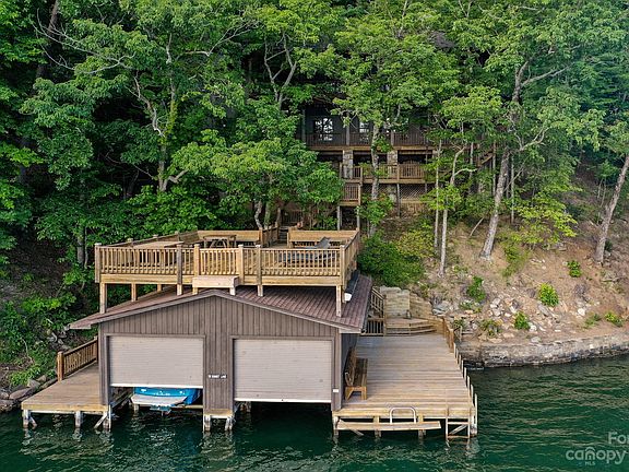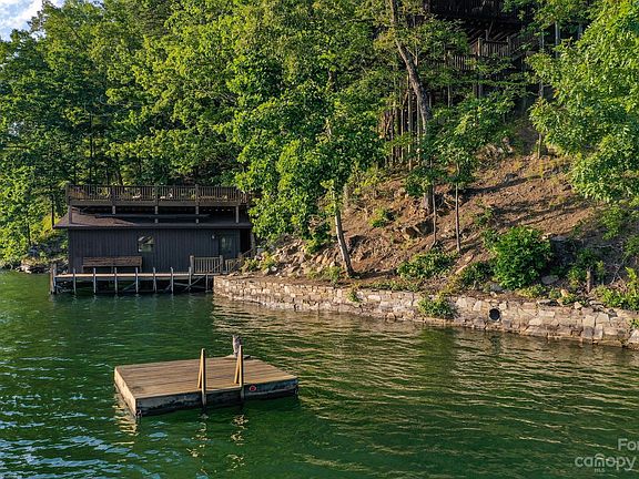 THE BEST VIEWS ON LAKE LURE! This Private Lakefront Estate is situated on 2.58 acres and has over 350 feet frontage on beautiful Lake Lure and includes multiple additional building sites.....all with spectacular mountain and lake views.....the best on the lake! The property also includes a fully furnished and newly remodeled, 4 bedroom, 3 1/2 bath, 2900 sq ft, European style lake home with incredible wrap around, screened porches with massive outdoor stone fireplace. You'll also love the custom two stall boathouse which features multiple decks and easy access into the lake. This custom home, built by Carlson-Farmer General Contractors is truly one of the premier "Private Estates" on Lake Lure! Offered at $2,950,000.