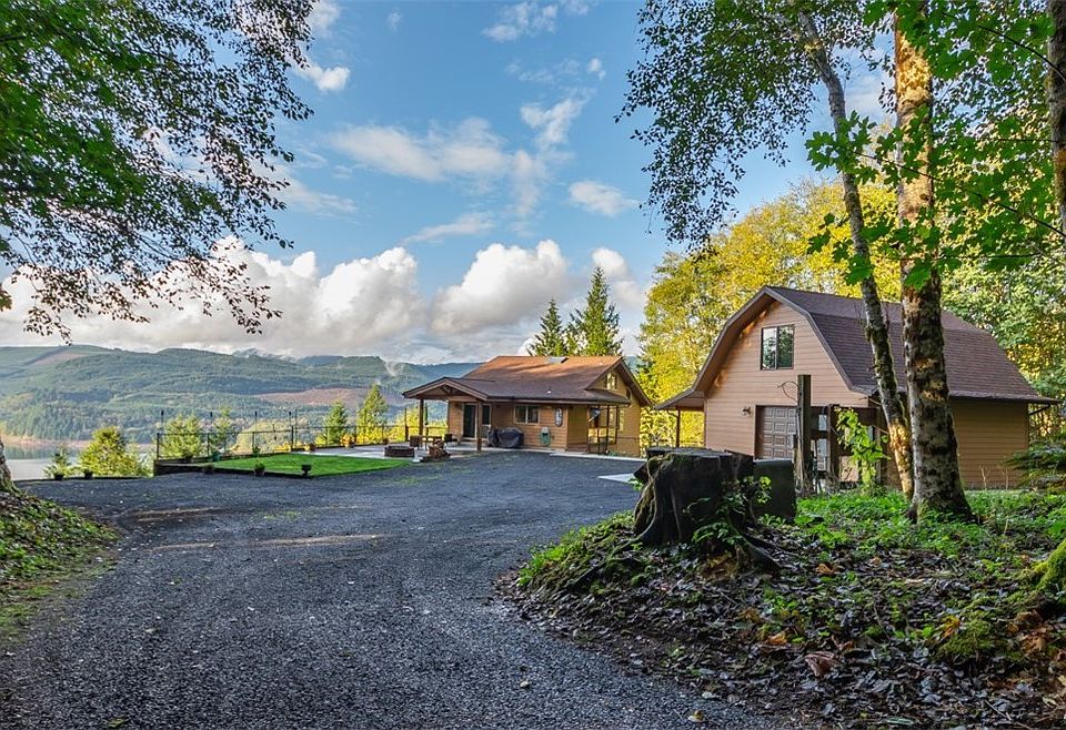 Check out the view and priceless sunsets! Custom Lindal Home tucked away for total seclusion or entertaining. Wonderful patio with views is an excellent place to relax and take it all in. Main house features open beam vaulted design with lots of light. Has heat pump and propane fireplace insert. Guest House/Shop is completely cedar lined and has a 1 bed loft w/ 3/4 bath. Shop is currently used as a boat house. Prop has many trees and an irrigated terraced yard. RV hook ups.