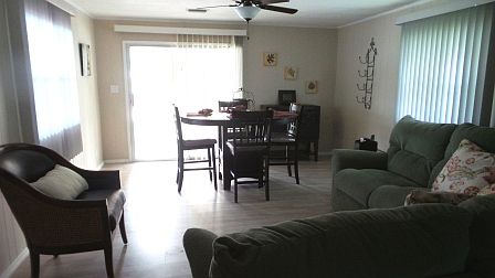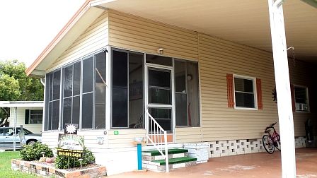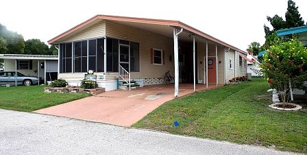 Located in a premier community with 6 pools and clubhouses. This is a double wide open concept home that has been updated and remodeled with 2 bedrooms/2 full baths and parking for 2 cars. It has Bamboo wood flooring with 3/4" sub flooring throughout the home, excluding the bathrooms which have beautiful wood laminate. All the flooring was replaced in 2021. Be sure to check out the beautiful sink bowls and fixtures in both bathrooms. The A/C/Heat pump is new in 2021, the tie downs were inspected and tightened in 2019, and the metal roof was inspected and sealed each year over the last 4 years. There's a completely remodeled gourmet kitchen with pull-out shelving in high end cabinetry, including a large pantry. It has a wonderful island in the kitchen with a custom wood overhang, allowing for a few bar stools where company can sit and relax while dinner is being prepared! All the kitchen appliances are under 5 years old. Additionally, the windows are fitted with cordless (child safety) cellular blinds that have thermal insulating properties. Many of the windows have custom wood valances made by the owner and the windows have a reflective coating ensuring privacy after sundown and UV protection during the day. There is an enclosed Florida sunroom with a front door entrance and beautiful French doors opening into the home. This space gives you an extra 180 square feet of living space. This home is waiting for you, however, it will not wait long! The current lot rent is $864/mo. All listing information is deemed reliable but not guaranteed and should be independently verified through personal inspection by appropriate professionals. Integrity Mobile Home Sales cannot guarantee or warrant the accuracy of this information, measurements or condition of any property. Measurements are approximate. Lot rent subject to change.
