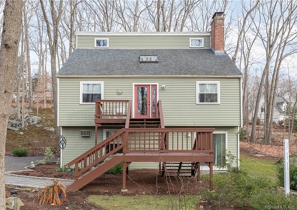 Sophisticated yet welcoming. This is not a cookie cutter. It's nicely secluded, nestled on a private interior lot, set well off the road, yet in a small neighborhood. This well maintained property is bright with lots of natural light. Built around topography of the land. Property has extensive decking and is a perfect escape from the city. Two fireplaces, kitchen with pantry new ductless A/C with on the second floor. Unit also has a heat setting. Lower level with quest suite with cozy family room and second fireplace, full bath bedroom and separate entrance. . This home is new to the market. Come and enjoy all that Guilford has to offer. After a floor plan was acquired it is very obvious that the town square footage is not accurate. We believe 2000 + more accurate. Please note, when you turn onto Talcott and reach the row of mail boxes, that is where you would take a left on private drive to #128 on your right.