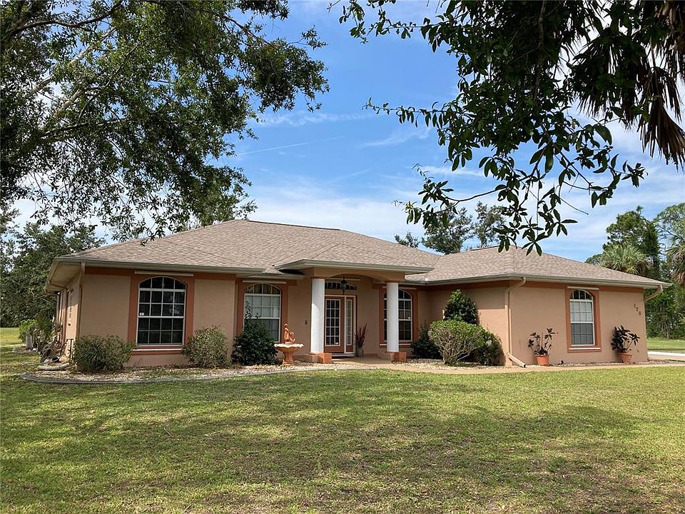 One or more photo(s) has been virtually staged. Desirable Deep Creek pool home on a double lot with long greenspace views at the end of a short street cul-de-sac. Custom home with large Lanai, 4 Bedroom, flex room 4th bed/den/office with built-in cabinetry. This 4 bedroom, 2 Bath, boasts a split floorplan for family and guests to enjoy their privacy. Crown molding in main living areas for that stately grander look. Some rooms boast built-in's and a murphy wall bed. Oversized 2 car garage with storage/workshop area. New Roof 2023, HVAC 2022. Community area features Deep Creek golf course and Harbour Heights waterfront park with dock and boat ramp.