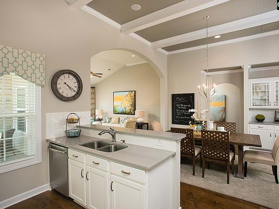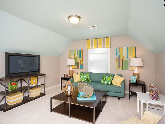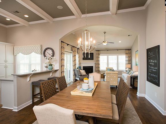 The Hartford is a two-story, Craftsman-style home that features two master bedrooms and two and a half baths. The beautiful open kitchen with 12ft. ceilings includes a spacious pantry and a large island with flush countertop which is open to the dining room and family room. Kitchen includes single bowl sink, gourmet kitchen with gas cooktop with hood above and wall oven/microwave, tile backsplash, upgraded white cabinets and hardware. The split master suites feature large walk-in closets and linen closets. Back master has 5' tiled shower with fiberglass pan and front master includes garden tub. The home also features a large upstairs bonus room. Options include an upstairs guest suite, fireplace in the family room, butler's pantry, tons of cabinets in laundry room. Covered patio with outdoor fireplace with stone hearth, irrigation and covered patio. Energy Efficient HERS individually tested and rated home