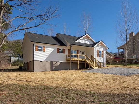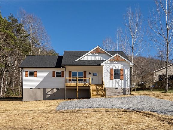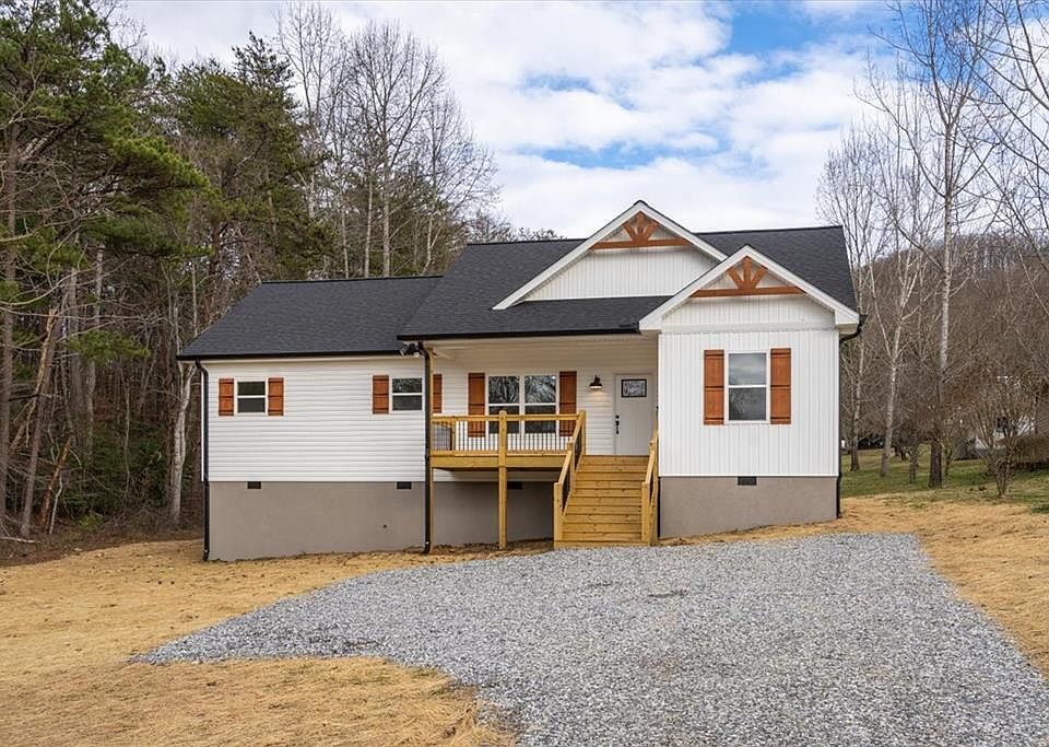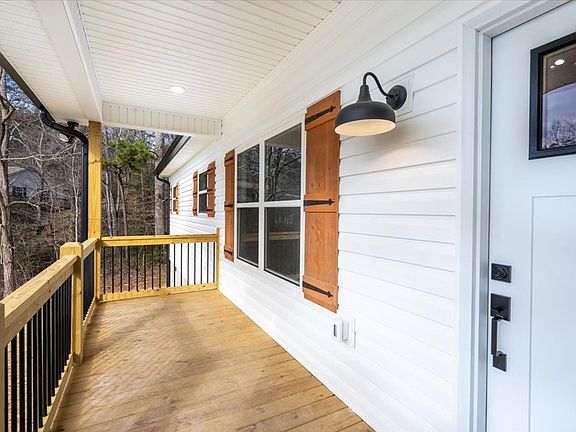 Newly completed! New Construction, less than 5 miles from downtown Blairsville! This home is a spacious 1472 square feet of meticulously designed living space. As you step inside, you'll be greeted by a stunning shiplap ceiling in the great room, adding a touch of rustic charm to the modern layout. The open concept floor plan seamlessly connects the living, dining, and kitchen areas, creating an inviting space for gatherings and everyday living. The great room is bathed in natural light, offering a warm and welcoming atmosphere for you and your loved ones. With three bedrooms and two bathrooms, there's plenty of room for your family or guests. The master suite provides a tranquil retreat, complete with a private en-suite bathroom. Custom cabinets with granite counter tops in the kitchen and bathrooms offer both functionality and style, while a huge walk-in pantry provides tons of storage for all your culinary needs. Enjoy peaceful views from your covered front and back porch and the convenance of being mere minutes to Lake Nottely marina. Durable and stylish, the waterproof laminate wood plank flooring is not only easy to maintain but also adds a touch of sophistication to the space. The black metal railing on the staircase adds a modern contrast, enhancing the overall aesthetic. Exterior wooden shutters frame the windows, adding character to the facade and complementing the home's design
