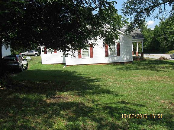 Cute cottage, with 9 x 19 front porch, large corner lot with shade trees and big side yard. Vinyl sided home features large rooms with big windows. Fully equipped kitchen with all appliances, including built in microwave, dishwasher, refrigerator, stove and huge pantry. Large laundry/utility room. Updated bath with ceramic tile floor and large vanity. Updated electrical with lots of outlets, insulated windows throughout, except laundry & kitchen. Added bonus is 8 x 12 outbuilding for storage, plus a 3 bay detached 16 x 30' garage. This property 'fronts' on Hwy. 29 with Converse Fire Dept. as neighbor to the rear. Tax records & GPS will show 108 Tram Street, however Spartanburg Co. 911 assigned 128 as street number. Seller states home was built in 1940, tax records indicate 1920.