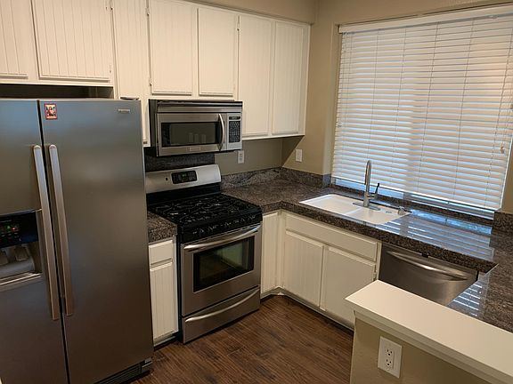 Charming DETACHED single family home in prestigious Northwood Pointe community. Very private front and side yard with wrap-around plants. Newly remodeled and well maintained. Hardwood floor throughout. Dining room with cozy fireplace. Gourmet kitchen with all stainless steel appliances and quartz countertop. 2 bedrooms plus office upstairs. Each bedroom has own bathroom. Master bedroom has dual sink, walk-in closet and plenty of sunshine. Home shows great! Walking distance to award winning Canyon View Elementary and Northwood High. Walking distance to association amenities including Community Park, Junior Olympic swimming facility, tennis/basketball/sand volleyball courts, baseball/soccer fields. Close to Orchard Hills shopping center, Zion market, and Hicks Canyon hiking trail. Refrigerator, washer, dryer included. Available beginning of May. Detached home with nice sized yard. 2 bedrooms plus office. Refrigerator, washer, dryer included.