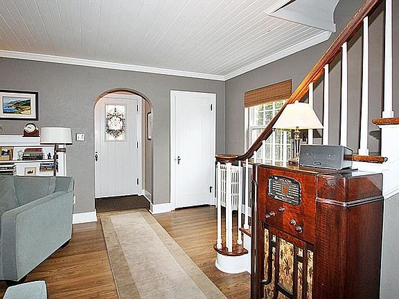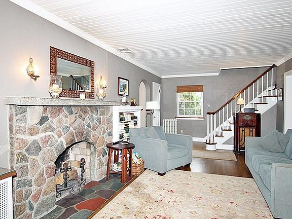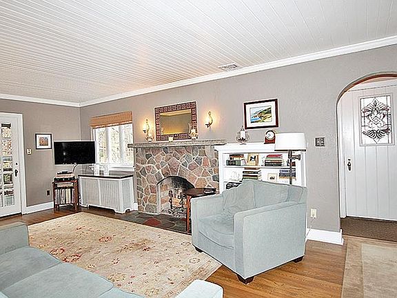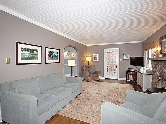 CHARMING! Gleaming hardwood floors throughout! Living room with stone fireplace, built in shelves & door to side porch. Dining room with crown molding, chair rail, two corner cupboards & sliding door to deck. White kitchen with stainless steel appliances, island seating, pantry with pull out drawers & door to deck. Three bedrooms & two full baths on upper level with ceiling fans & hardwood floors. The fourth bedroom is on the third floor with storage areas & is currently used as an office. The lower level has a full bath & a wonderful gameroom with wall to wall carpeting & built in shelves.