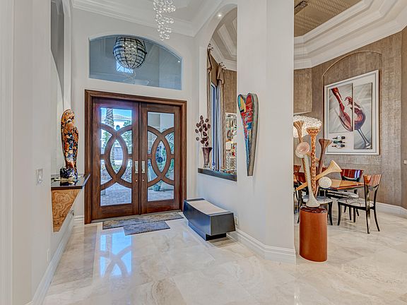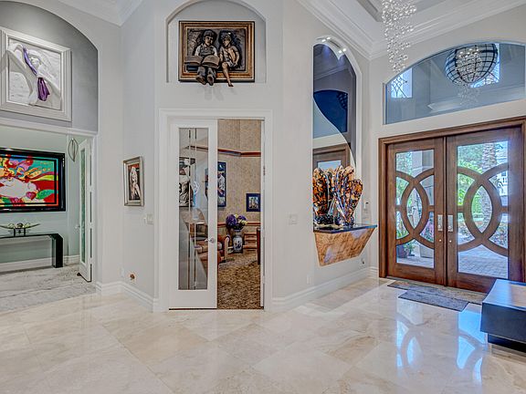 Situated on the prestigious Via Quantera in Palm Beach Gardens this meticulously updated home is a true masterpiece for the discerning buyer with a profound appreciation for contemporary aesthetics. Open-concept living area is a stunning showcase with quality wood built-ins, artwork, provides an ideal setting for entertaining guests or simply relaxing in style. The outdoor living spaces are equally remarkable, with a well-thought-out landscaped backyard that offers privacy in a peaceful setting. A sparkling pool invites you to take a refreshing dip or just relax in the heated spa, while a stylish patio provides the perfect space for outdoor entertaining with built-in summer kitchen. GOLF MEMBERSHIP The exterior of the property displays timeless elegance, featuring clean lines, symmetrical patterns, and striking architectural elements. From the moment you approach the property, you're greeted by a sense of grandeur and sophistication. Step through the front door, and you'll be captivated by the flawless attention to detail and the seamless blend of classic charm with modern refinement. The interior spaces have been thoughtfully designed and exquisitely appointed to create an atmosphere that is both inviting and awe-inspiring. The open-concept living area is a stunning showcase with quality designer built-ins and architectural appointments provides an ideal setting for entertaining guests or simply relaxing in style. The gourmet kitchen is a chef's delight, featuring state-of-the-art appliances, custom cabinetry with a striking countertop. Every aspect of the kitchen has been meticulously crafted to not only provide functionality but also serve as a visual masterpiece in its own right. The centerpiece of the living area is the bar which features mesmerizing lights behind the natural stone quartzite. This creative lighting arrangement adds a touch of glamour and creates an ambiance that is both alluring and visually striking. The lights bring out the natural beauty and depth of the quartzite, making it a captivating focal point. The wet bar is equipped with an ice maker, beverage cooler, and wine cooler, ensuring that all refreshments are readily available. Whether it's crafting a refreshing cocktail or accessing your favorite chilled beverages, this well-appointed bar area offers convenience and elegance. The bedrooms offer a serene retreat, with luxurious finishes, plush carpets, and ample natural light. The master suite, in particular, is a sanctuary of tranquility, featuring a private en-suite bathroom that showcases opulent fixtures, a spa-like soaking tub, and a spacious walk-in shower with unique doors. The outdoor living spaces are equally remarkable, with a well-thought-out landscaped backyard that offers privacy in a peaceful setting. Enjoy the best in outdoor entertaining with built-in summer kitchen over looking a heated pool and spa. Furniture included: Dining room table and chairs, family room, kitchen bar stools, loft area, two second floor guest bedrooms. All outdoor furniture, game room furniture and games and 11 TVS. GOLF MEMBERSHIP