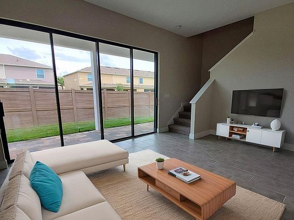 Beautiful 4-bedroom, 3 bath single home located within minutes of Central Florida attractions and the Orlando International Airport. Stainless steel appliances, open concept floor plan in a luxury resort style gated community. Featuring tile flooring throughout the living area, kitchen, and bathrooms. Carpet flooring in bedrooms. This property includes washer and dryer. The clubhouse has a pool, a small water park, lounge, gym and business center. This property has a mandatory cable/internet package of $85 monthly.