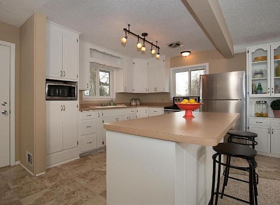 Newly remodeled home: bright & sunny, walls of windows, open floor concept, SS appliances, kitchen island w/breakfast bar, 2 fireplaces, 3 bedrooms on one level, 3/4 master bath, 2-car attached garage.