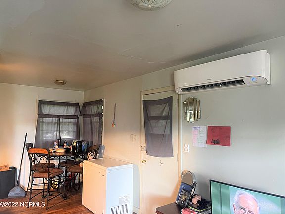 Great investment property in Washington, NC centrally located near downtown and shopping. 2 Bedroom/1 Bath one-story home that has been raised with front and back porch areas added. Interior has wood floors in the living room, dining area, hall and both bedrooms; kitchen and bath have updated LVP floors. There's also an energy-efficient electric minisplit hvac unit in the main living area. The exterior features a metal roof, updated porches and block foundation, storage underneath. Currently rented for $650/mo. Home has been raised by FEMA and is subject to minimal flood insurance rates.