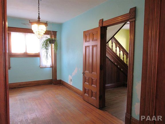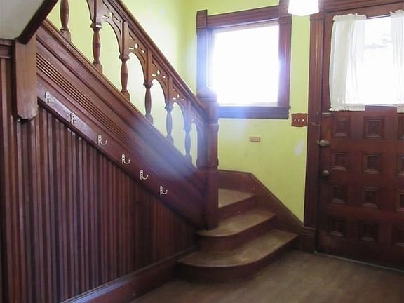Fascinating and delightful 4 bed, 1 1/2 bath home located on Canton's historical West End. Spacious rooms, original hardwood floors throughout and great wood and stain glass features. Front entry staircase opens up to 4 bedrooms and a back staircase, as well. New roof and siding with transferable warranty. Brick garage goes with home and has a separate Tax ID #. House being sold "strictly As-Is."