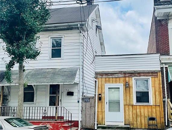 Loads of opportunity!!! Twin home with 3-4 bedrooms and 3 car detached garage! Additional 500+ SQ FT from separate extra building...which would make a great entertainment space...for a total of 1900+ SQ FT of living space. First floor offers living room, sizable eat-in kitchen plus separate dining room, as well as a mudroom and half bath. On the 2nd floor, you will find 3 bedrooms and a full bathroom. A walk-up 3rd floor attic space offers plenty of storage or the option for a 4th bedroom. There is also a large private covered patio behind extra building and lovely fenced yard off rear of house. Great investment opportunity or owner occupancy, just needs some TLC. Property being sold as-is. CO is the responsibility of the buyer.