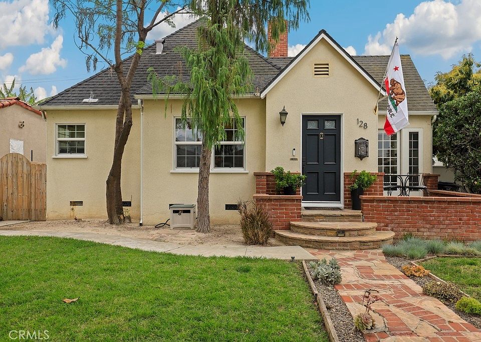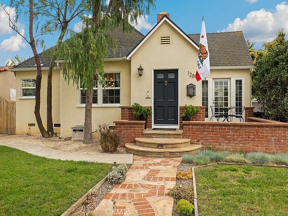 Experience the charm of this beautifully updated home nestled in a wonderful neighborhood. Go inside to find a welcoming entryway with a built-in desk and drawers, ideal for a home office nook. The open living room features a stunning refinished fireplace with brick and plaster detailing and a wood mantle, creating a cozy ambiance. The dining area impresses with a modern starburst light fixture and a unique wallpapered ceiling, adding a touch of drama. The updated kitchen offers bar seating, white shaker-style cabinetry, and sleek black granite countertops. A subway tile backsplash with a striking patterned accent wall over the sink adds character. The laundry room off the kitchen doubles as extra storage and includes a microwave cubby for convenience, a door from here leads out to the backyard and detached garage. Two bedrooms and a full bathroom are situated off the hallway. The bathroom retains its original charm with pink-tiled countertops and shower surround. The backyard is perfect for relaxation and entertaining, with lush grass, a pavered patio, a lemon tree, and mature shrubs providing privacy. The detached 2-car garage offers additional storage and parking. Enjoy easy access to shopping centers, markets, schools, and restaurants. This home is a perfect blend of charm and modern updates—ready for you to move in and make it your own.