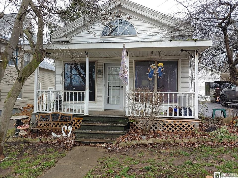 2 or 3 bedroom home located downtown Fredonia in need of some TLC. You might even be able to watch a few football games from your front porch! There is a portion in the back that used to be a garage that was converted to a bar about 20 years ago that hasn't been used for that purpose since. With a little vision, that space could be converted back into a garage or just use for storage as it is now. Cash offers only. Sold as is.