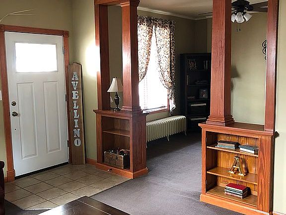 Spacious two story home situated on a large lot with a two car detached garage. This 3 bed 1.5 bath features a large eat in kitchen as well as a half bath and laundry room on the first floor. The kitchen has access to the large wooden deck perfect for cookouts with family and friends. This home has beautiful wood work throughout with large pillars and bookshelves in the main living area. Upstairs there is 3 bedrooms with a full bath. Also included upstairs is a walk in closet perfect for storage. There is an additional room currently used for storage. Not pictured here is a very large attic space and a large basement once again perfect for storage.
