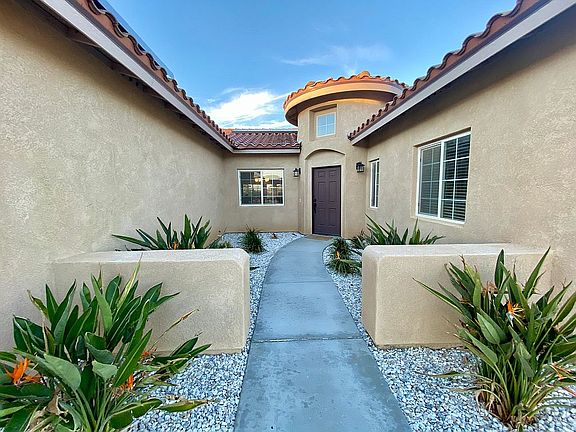 128 Rancho Del Cerro This beautiful desert oasis is located in the coveted Maravilla neighborhood. You will never have an electric bill in this home with its 10KW PAID SOLAR. From the curb you see the colorful and low maintenance landscaping. As you enter the home you are welcomed into a vaulted ceiling turret foyer. This home is a split open concept floor plan with the master in the back of the house and the other bedrooms in the front. The kitchen has beautiful cabinets, granite countertops, stainless steel appliances, and a walk-in pantry. The master bedroom is spacious with French door access to the backyard gas firepit and a gorgeous en suite. This bathroom showcases an oversized tub, double vanity, tile shower, and HUGE walk-in closet. The backyard of this home is a show-stopper!! The large heated pool has a natural flagstone beach entry, baja shelf, pebble-tech plaster, waterfall grotto, fire bowl accents, built in bar stools, and a swim-up bar. The attached 6 person hot tub has flow overs into the pool. The sunken outdoor kitchen allows for easy grilling and access to the shared bar with the swimmers in the pool. The landscaping boasts over 3000 sq ft of natural grass, 2800 sq ft of artificial turf, and countless palm trees and other vibrant plants. Other features include: RV access Enclosed dog run with pet turf Masonry wall Covered patio 3 car garage and many more... With so many amenities to this home, the only way to appreciate them all is to see it for yourself.