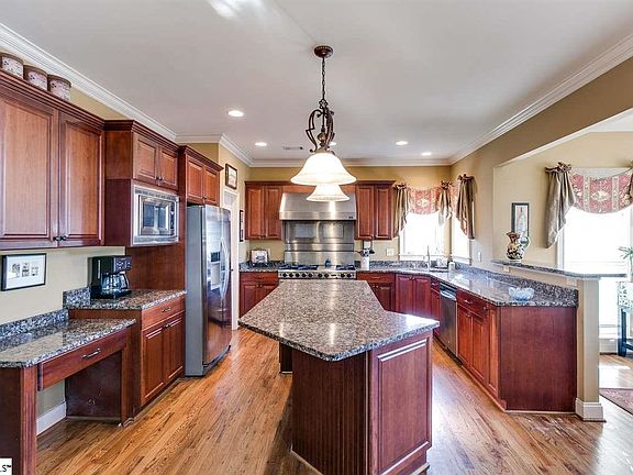 Award winning Powdersville Schools are within walking distance of this incredible 4900 plus square foot home. Exquisite Gourmet kitchen, spa-inspired master bathroom, coffered ceilings study with cherry bookcases and beautiful sun room with lovely view. These are just sampling of the special features in one of Powdersville's most sought after communities of Birch River. The kitchen with walk-in pantry is a chef's dream. The kitchen boast a Five Star range with 6 burners plus griddle and is the ultimate in professional performance. Granite countertops and cherry wood cabinets featured along with stainless appliances. Gorgeous window treatments and crown moldings everywhere give this home it's cozy designer feel. The large Master suite has a sitting room with trey ceiling. 3 other large bedrooms upstairs with a full bath are perfect to keep the kids close by. The full finished walk-out basement has a fantastic kitchen with granite countertops and beautiful cherry cabinets that could be a complete home for the in-laws! Your family will love the recreation room and the theater room and there are also 2 additional rooms that could be 2 extra bedrooms, plus a full bath. The sreened porch overlooks the community pond and fenced over 1 acres yard. Community pool and clubhouse.