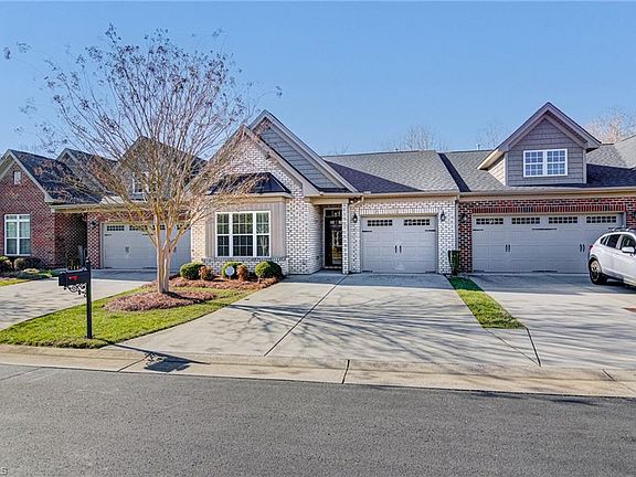 Welcome to this move-in ready two-bedroom/two-bathroom, brick townhome with low Davidson County taxes and city conveniences. An open floor plan with great room, kitchen, and sunroom offers lots of flexibility for living & dining. The great room features a gas-log FP and beautiful wood floors, and it leads to the sunroom that is a private retreat with privacy fenced patio. The kitchen has lots of cabinets, granite counter tops, tile back splash, and a generous pantry. Both bedrooms have en suite bathrooms, and the primary suite has step-in shower and large walk-in closet. Garage door has keypad entry. The Commons at Millers Creek offers neighbors a walking trail with pond, gazebo, and benches, landscaping maintenance, and more. It's convenient to restaurants and shopping, yet an easy drive to downtown Winston-Salem.