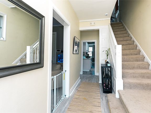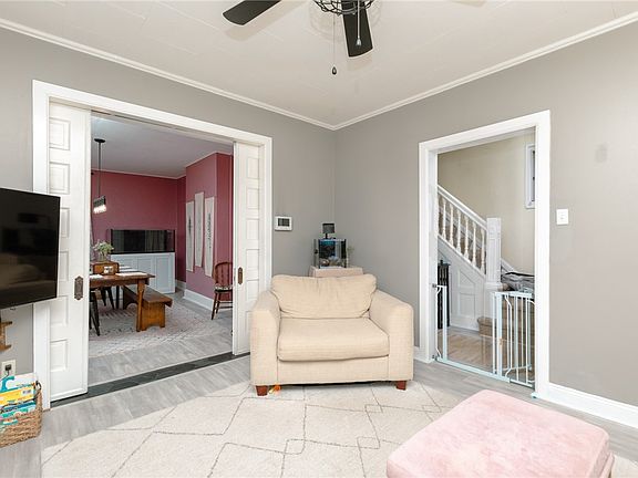 Welcome home to 128 Washington Ave! This three bedroom one bathroom home is located on a quiet street in Bellevue, only blocks away from restaurants and shops in the Northgate School District. The large living room features a beautiful brick fireplace, with original pocket doors leading you to the dining room. The updated kitchen, with a brand new stainless steel farmhouse sink, has an abundance of cabinet and counter space. Upstairs, you'll find two large bedrooms and a third that can function as a nursery or office. The finished third floor has two rooms that can function as a bedroom and office or family room combo. The backyard has new fencing around the perimeter, perfect for your furry friends! The basement was waterproofed in 2020 with a transferrable lifetime warranty, and new concrete floor throughout.