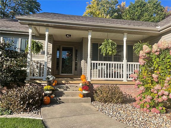 You will want to call this one HOME from the moment you pull in the driveway! Quality details abound in this 4 bedroom, 3 full bath ranch with split floor plan. The curving sidewalk leads you to the welcoming front porch with country views. The entire house gleams with new flooring and paint with upgraded baths. The spacious living room is a sight to behold with the two sided gas fireplace being the focal point. The 21x20 kitchen includes a sitting area on the other side of the fireplace. Walk out to the amazing patio area with Omni stone, vinyl fencing and a stone water fountain. The surrounding trees add natural beauty and privacy to the yard. The master suite includes a walk in California closet, a jet bathtub and shower. Great mud room/laundry right off the garage and into the kitchen. 25x25 FR in basement with another full bath and the 4th bedroom would also make a home office. The walk out basement includes double doors to allow for easy lawn storage w/ huge space for a workbench