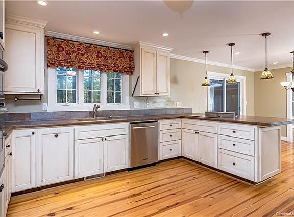 Beautiful home on a large secluded 2.387 acres wooded lot in the Weddington area of Union County. Covered front porch for your rocking chairs, Gorgeous hardwood floors flow through the home, Undated kitchen w/ 42" cabinets, stainless steel appliances, large pantry with slide out drawers. Spacious family room with fireplace and built in cabinets for your entertainment equipment. Home Office / Library on main level. Huge deck with builtin bench sitting off the screened in back porch. 800 square ft two story workshop with 220 power connections. Fenced yard and gated front entrance. Seller is providing a One Year 2-10 Home Warranty.