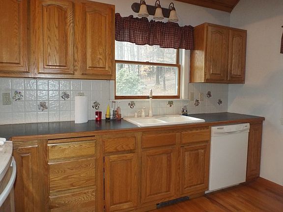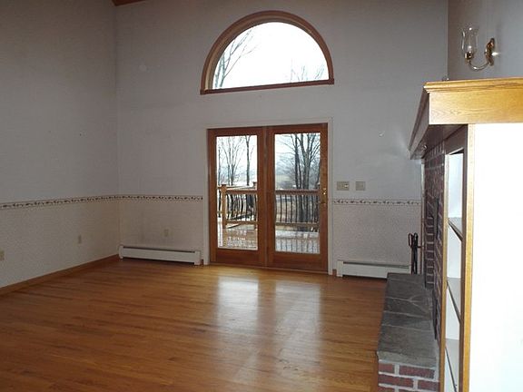 Beautiful 2 story home that sits on 2 private acres. Kitchen & Dining Room have hardwood floors, high tongue & groove ceilings and fireplace, 3 bedrooms, 2 baths, master bath has Jacuzzi tub. Finished family room in basement with tile floors, wainscoting and bar area, 1 car garage. Large deck to enjoy the views. This home is located close to town & hospital.