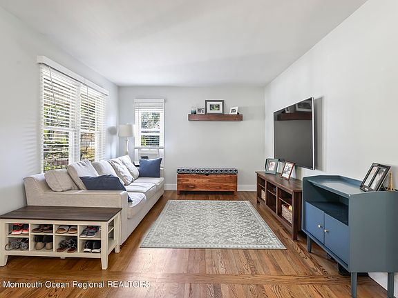 Stunning home located on a quiet residential street in the scenic Shark River Hills section. Just a couple miles to the beach, this home features an ideal corner lot location with a cozy wrap-around porch , private driveway and elegant curb appeal. The 1st floor features an open living space with a living room dining room and newly renovated kitchen with custom cabinetry, quartz counters, newly tiled backsplash and top of the line SS appliances. Additionally, there is a 1st floor bedroom and full totally remodeled bathroom!The 2nd floor features an additional 3 bedrooms and fully remodeled bathroom. The generous sized basement is spectacular for additional entertainment/storage and is a full walk out to the level private backyard. The private yard also comes with custom oversized storage shed. Enjoy this turn key charming home just steps away from all of the perks the shore has to offer. Walking distance to the Shark River Hills Elementary!