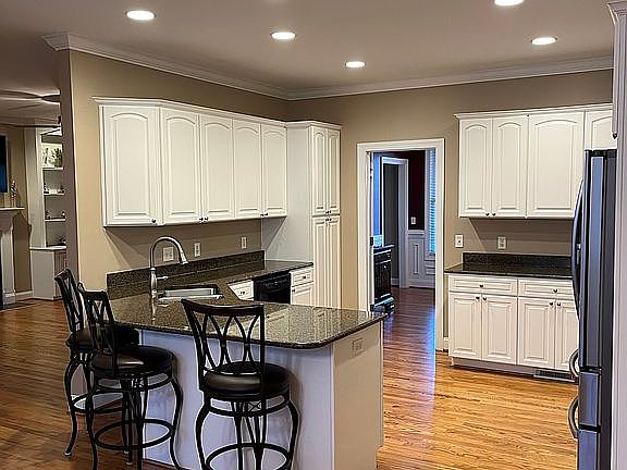 - RoomKitchenFeatures: Granite Counters, Recessed Lighting, Eat-in Kitchen, Floors-Hardwood, Bar, Cabinets-Glazed