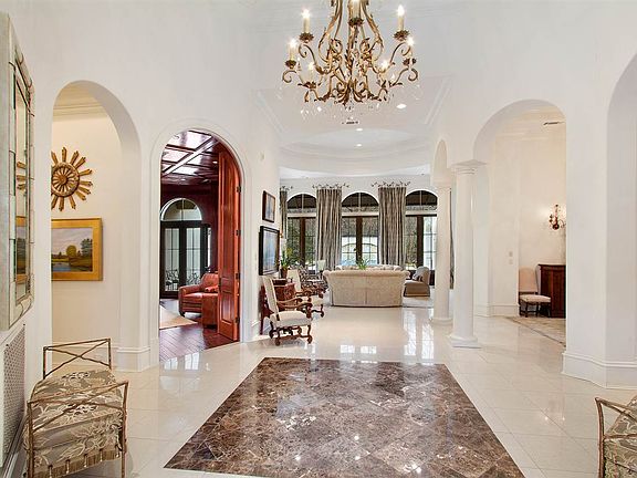 Fabulous custom built one-story Mediterranean home on 2.28 acres in Bridgewater One. Five bedrooms/6 full baths and 2 half baths. Luxurious living at its best! Grand foyer with soaring ceilings and beautiful marble flooring through out much of the living area. Formal living with European mantle, fireplace, built ins, windows over looking the exquisite back yard. Formal dining, state of the art kitchen, wonderful breakfast room, and family room adjoining the kitchen. The family room features a vaulted ceiling with gorgeous inlaid wood, a fireplace with a MS artist painting concealing the TV, and French doors opening to fantastic outdoor living space. Master suite to die for with a fireplace, European mantle, and windows galore overlooking the lush landscape. His and hers closets and bathrooms - his having custom Rosewood cabinets. Her closet is decked out with glass doors, shoe shelves, etc. Every woman's dream! Hand painted walls in powder room. Split plan with 3 bedrooms on the opposite side of the master as well as an additional bedroom/bath off of the den. His handsome office with Brazilian cherry doors and cabinets, African mahogany doors, and her peaceful office features a spacious room, desk area and built ins. Media room with screen and movie theater recliners! Outside of the house there is a 382 square feet exercise room with its own half bathroom. Entertaining in the lovely back yard is magical with fabulous pool that has water and fire features, hot tub, covered patio with fireplace with and outdoor kitchen that has a grill and mini fridge. Fenced in yard that is extremely private! 4 car garage with storage rooms and additional parking pads. This home has it all - sound system inside and out, sprinkler system, alarm system, wine cooler and inside bar. This home is a one of a kind!!!!
