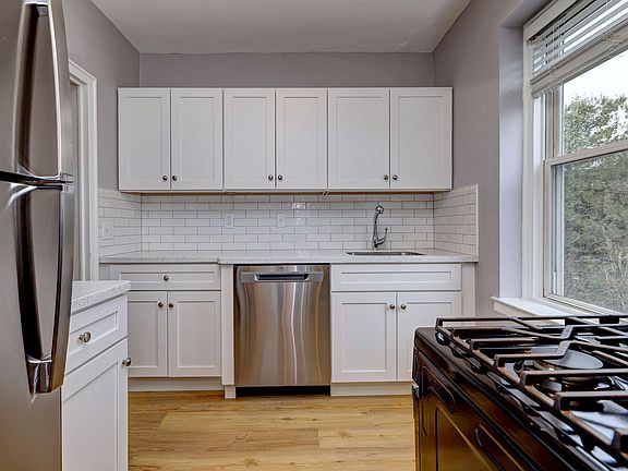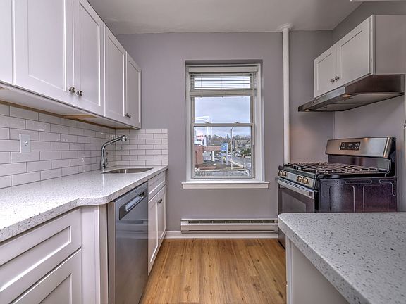 You could be the lucky tenant to be the first to rent this sparkling and tastefully updated large one bedroom unit in Woodside Green. Freshly painted and gleaming, this corner unit is flooded with natural light. The charm of the high ceilings, an entry foyer, arches, a separate dining room ( or dedicated home office space), a large living room, a bedroom with two closets, hardwood floors throughout and a gorgeous new bathroom and kitchen will delight you. Hot-Water, parking and cooking gas are included in the monthly rent. Communal laundry room and mail room. Wonderful location - across the street from Ridgeway Shopping Center and walkable to downtown restaurants, library etc. Located on the second floor - no elevator. Very Good credit and references are a MUST. No pets allowed. $100 Move In charge applies to tenant. tenant is responsible for cable, internet, electric and move in fee ($100). Must have liability insurance .