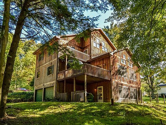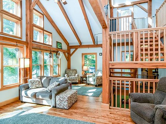Stunning timber frame home on 1.84 acres within 15 minutes of Cranberry! This board and batten clad home sits on a beautiful, mostly level, property bordered by both Little Connoquenessing and Yellow Creek. With 4Br and 2.5Ba, including a spacious main floor master bedroom suite, and a large open floor plan, you have plenty of space to spread out! Main floor laundry and an additional 1/2 bath make it possible to enjoy true one level living in this home. Oak hardwood on the first level complements the exposed oak timber framing throughout the home. A wall of windows in the 2 story living room allows for ample natural light! The walk out lower level, with finished concrete floor, serves as a large family room area and contains a functional wood stove for supplemental heating on those cold winter days. LL also includes spacious 2 car garage and large workshop (or storage) area. 2nd Fl includes 3 well sized bedrooms and a full bathroom along with a spacious loft area! Welcome Home!
