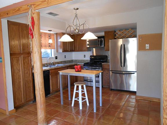 Perfectly situated on a LARGE lot within a Cul de sac. Inside cozy and charming, outside lots of space and possibilities. This home is MOVE in READY! NO POLYBUTALANE!! Open floorplan. Remodeled kitchen and bathrooms. Stainless Steele appliances include: Refrigerator, oven with range, dish washer, plus the washer and dryer stay too. Beautiful saltillo tile welcomes you, and the laminate wood flooring completes all the bedrooms. Side yard access for your leisure activities with room to park the largest RV you can find. Beautiful views of the Sandia mountains. Park like back yard, great for entertaining with a strong gazebo. Enjoy peaceful evenings by the fire with family & friends enjoying the gorgeous New Mexico sunsets. Newer roof, water heater, furnace and refrigerated air. Large lot, perfect for outdoor activities such as horseshoes and cornhole. This home is bathed in sunshine and ready for you!
