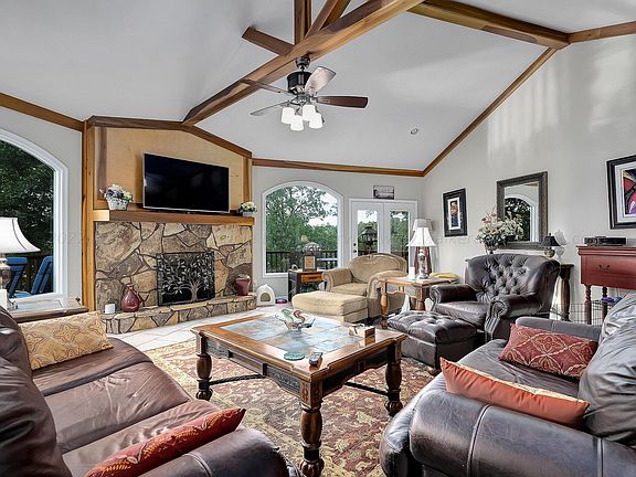 Smith Lake (Brushy Creek) Custom 4BR/2.5BA with approx 1.1 acres and 284+/-ft of waterfront. Point lot with incredible views. Natural landscaping, concrete driveway and oversized 2 car detached garage. Large open floorplan with vaulted ceilings and exposed beams. Main level master bedroom and bath. Lower level features second living area, three bedrooms and bath. New roof September 2024.