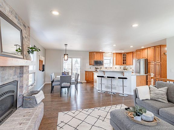 Welcome to your own 1/3 acre private haven located at the end of a tranquil tree lined cul-de-sac shared with sociable neighbors. This quiet retreat is nestled behind the revered 147 acre Waneka Lake Park where you can soak in the snow capped Indian Peaks range while strolling the 1.2 mile trail around the lake, playing pickleball or frisbee golf or recreating on the lake with a paddle board or canoe. You will be delighted with the flawless condition of this lovingly maintained home with a charming refresh. Walls have been opened to introduce a great room floorplan that allows the home to live larger than its size and offers a functional design where every space is utilized for comfortable living. A whitewashed brick fireplace with a custom timber mantel is the focal point of the inviting living room and real wood floors extend the main level. The welcoming kitchen with stainless appliances is large enough for multiple chefs to enjoy and showcases natural materials with a botanical backsplash that connects the interior to the abundant nature outside. The integrated dining room is designed to promote family interaction and accommodates casual and formal occasions. Three upstairs bedrooms provide the optimal floorplan configuration and a cleverly designed upper level bath allows the spacious primary bedroom to enjoy a personal half bath. The flexible lower level with its freshly finished bath is a versatile space that can be customized to meet your current needs and adapt to your evolving aspirations. It makes the perfect recreation room, guest suite, home office or gym. As you step out onto the new, expansive Trex style deck, your eyes are immediately drawn to the sleek iron rails that line the perimeter and the sprawling yard that creates a veritable playground to indulge in your favorite outdoor activities. Equidistant to Downtown Louisville and Old Town Lafayette, you instantly double your dining and entertainment options that are each just minutes away.