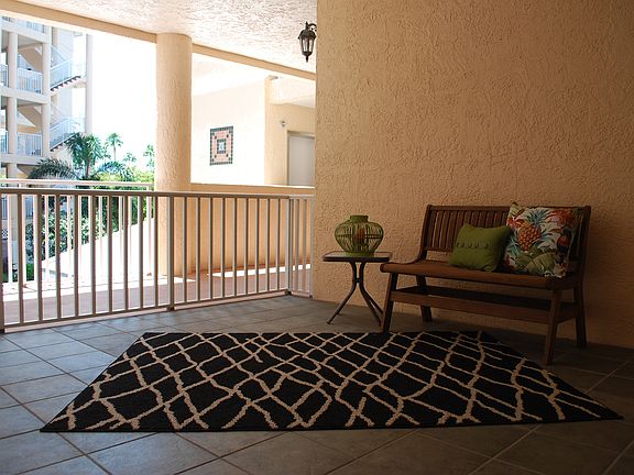 Elegant Updates include a granite kitchen, custom tile floors + baths, newer carpets and paint thru-out. Comfortably sleeps five, plus garage parking - priceless. Fully equipped with top shelf items including; Gourmet & fully equipped granite kitchen, custom tile, ceiling fans; family room; dining room; spectacular lanai view; master bdrm w walk-in-closet + luxury bath; cable, high-speed internet + secure wireless; private staircase to a private patio overlooks intracoastal waterway.