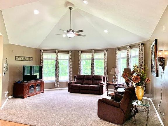 This exquisite home is nestled perfectly on a 2 acre lot on the south side, & no expense was spared when these sellers built their "forever" home. The open concept layout is fabulous for entertaining, or the full, finished basement offers plenty of space for large groups to gather. The master suite is stunning & has French doors that lead to a covered porch & his & hers walk-in closets. The extra 3 car garage in addition to the 2.5 c attached garage gives plenty of parking & tinkering space. A brand new heat pump & 1 year home warranty offer peace of mind. This one is a must see-it is absolutely perfect!
