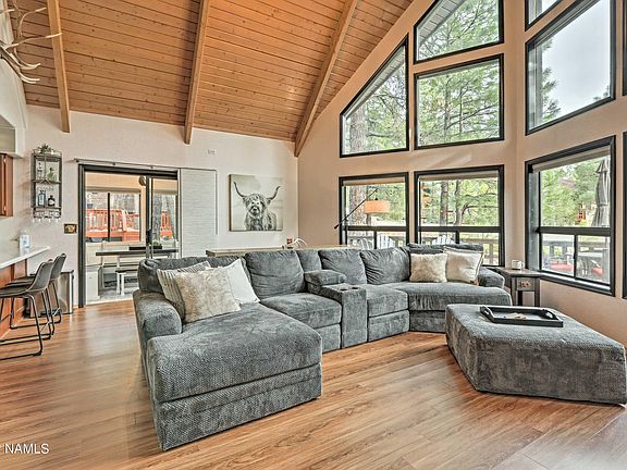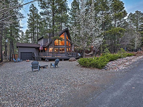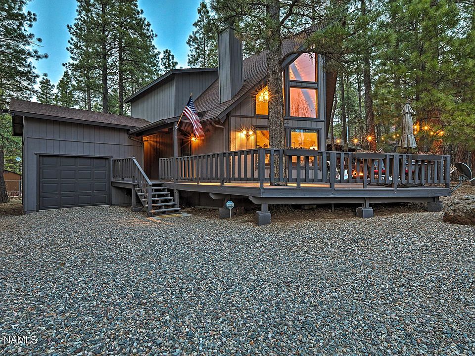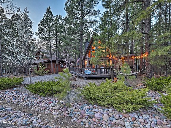 This 3 bedroom 2 bath chalet style home is in the most sought after area in Munds Park-Animal Hill, and has proven to be a successful Airbnb. This home is surrounded by trees, has a separate game room on the east side of home and extended den/family room off the back. Beautiful wood panel floors in just the right areas, wrap around deck to back deck, Master bedroom is on main level with other 2 bedrooms upstairs. There is new paint and the appliances are only 2 years old. This home is light and bright with windows throughout the front. This home has been well cared for and is move-in ready! NO HOA fee and it is also close to the national forest, lake, hiking/ biking trails, park, restaurants, store and more! Munds Park is only 17 miles South of Flagstaff and a 2 hour drive from Phoenix!