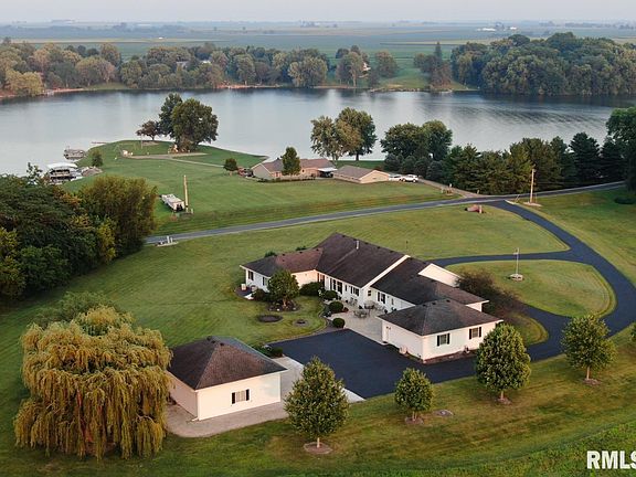 This stunning ranch style home sits on a hilltop overlooking Little Swan Lake, near Avon, IL. High quality construction and luxurious features, including; vaulted ceilings, skylights, spacious kitchen w/ granite CTs, main-floor office (could be 4th bedroom), mega-sized master suite & W/I closet. Two additional bedrooms in finished portion of basement, each with their own private full bath. Theatre room, two laundry rooms, and many other amenities. Attached 4+ car garage with heat and A/C. Newly repaved blacktop driveway. Underground 1,000 gallon LP tank. Bonus 3 car detached garage, perfect for boat storage and toys. A separate lake lot will be included in the sale that will allow the new owners to have access to the lake! Enjoy fishing, boating and lake life, and an amazing view from your wrap-around front porch. Located 35 minutes from Galesburg, IL and 30 minutes from Macomb, IL.