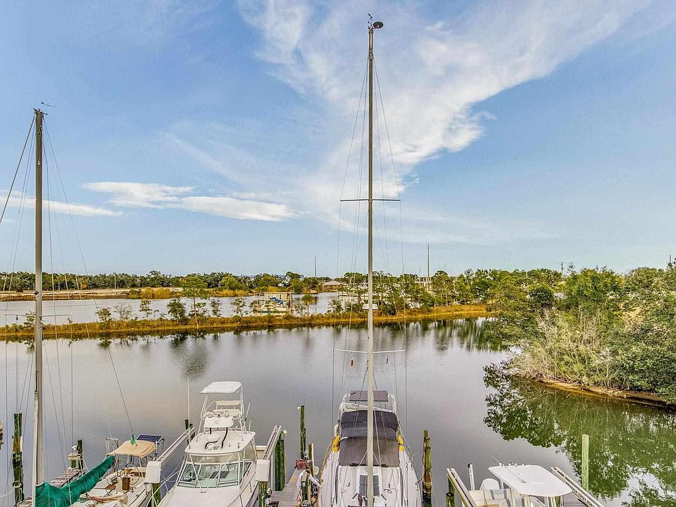 Looking for dolphins, beautiful sunsets, and your own BOAT SLIP?! This is it, this exceptional townhome offers an unparalleled living experience with breathtaking views of the Bayou Chico Basin. As you approach, a sense of tranquility washes over you, setting the stage for the perfect homebuyer's haven. The exterior boasts a one-car carport and garage, providing excellent shelter on rainy days. Adjacent to the garage is a versatile bonus room, currently utilized as an office/workout area. Imagine tailoring this space to your desires, and through the sliding glass door, step onto the covered deck – an idyllic spot to relax and soak in the Bay views. Host BBQs, entertain friends, or simply unwind while observing the local wildlife in your backyard. As a bonus, revel in the convenience of your very own boat slip, ready to harbor your boat or that of a friend. Venture to the second level, where an open-concept floor plan seamlessly connects the living room, dining room, and kitchen. Luxury vinyl floors create a cozy ambiance throughout. The kitchen is a culinary haven, featuring wood cabinets, granite countertops, a breakfast bar, and stainless-steel appliances. Enjoy morning coffee on the balcony while taking in the mesmerizing sights of water and boats. A half bath, coupled with laundry hookups, adds convenience to this level. Ascend to the third level, where two bedrooms await with wall-to-wall carpeting. The first bedroom boasts a private balcony, perfect for indulging in your favorite book. Its en-suite bathroom exudes luxury with a single vanity sink, granite counters, a soaker tub, and a tiled surround. The second bedroom also has its own bathroom, featuring a single vanity sink and a tub/shower combination. Immerse yourself in the unparalleled views, luxurious amenities, and privacy that this townhome offers.