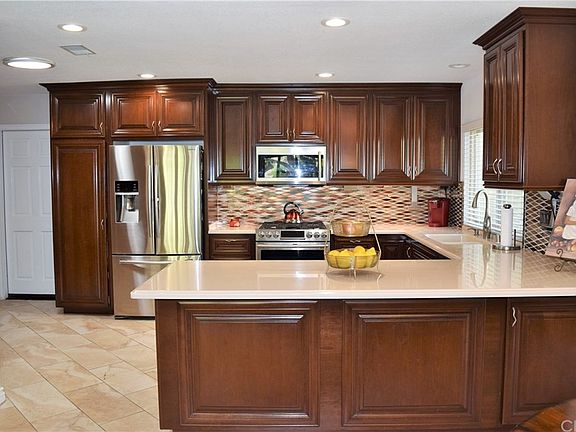 Beautiful single story 4 bedroom, 2.5 bath home with 3 car garage on a cul-de-sac located in desirable Canyon Crest. Walk through the double entry doors and step onto 12x24 stunning tile flooring through out. The updated kitchen is a chef's dream where you will find cherry wood cabinets with brass handles, soft close drawers, stainless steel appliances, convectional oven, beautiful back splash, pull out drawers and corian counter tops. Kitchen opens up to the cozy family room which has a beautiful brick fireplace that is gas and wood burning, with neutral paint and gets plenty of natural light. Formal Living room also has a brick gas/wood burning fireplace, a bar area and a slide out to the backyard. Spacious master bedroom has walk in closet, sliding glass doors to backyard and a remodeled bathroom with walk in tiled shower that has gorgeous accent features. Wait there is more...home has upgraded dual pane windows, doors, solar dots, new soft water / reverse osmosis water purifier system. Backyard is a peaceful oasis where you can relax under a large covered patio or in your private pool and spa, you also have a side yard with a peaceful sitting area surrounded by pomegranates, orange, lemon, tangerine and pink grapefruit trees. Save money year round on electricity with fully paid 24 solar panels. Home is conveniently located close to Canyon Crest Country Club, shopping centers, and schools. Don't miss out on this amazing home, call today to schedule your private showing.